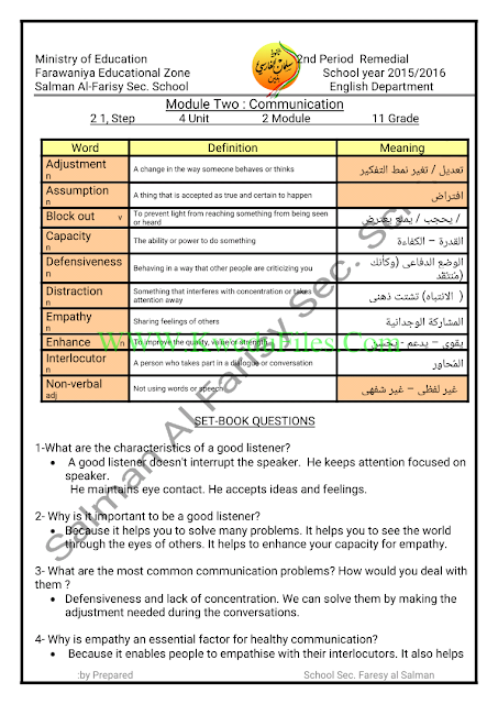 أحدث ملفات الصف الحادي عشر, لغة انجليزية, الفصل الأول