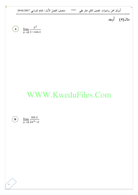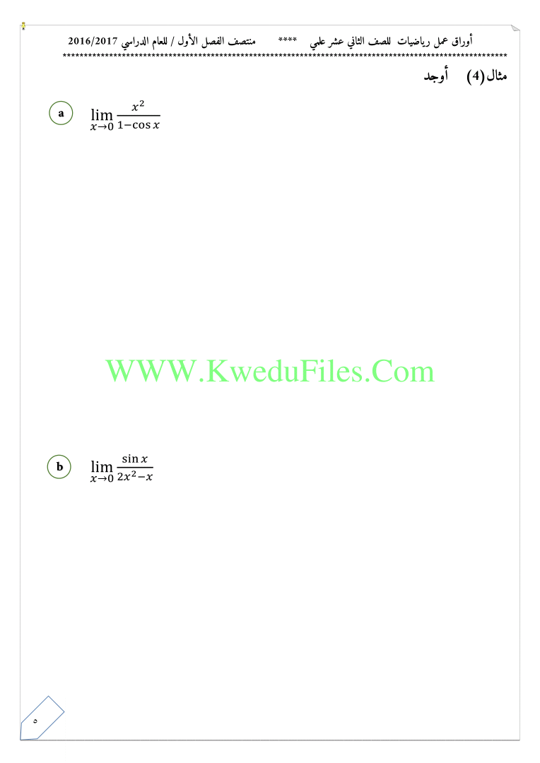 مراجعة منتصف الفصل الاول في مادة الرياضيات للصف الثاني عشر العلمي للكورس الاول عدد اوراق هذا الملف 14ورقة