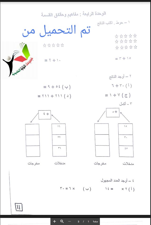 معلومات الملف: إليكم أوراق عمل في مادة الرياضيات للصف الثالث الوحدة الرابعة | ||
