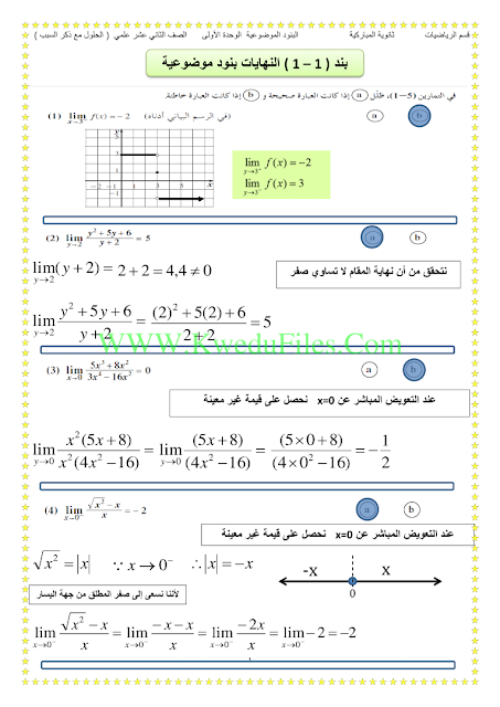 أحدث ملفات الصف الثاني عشر العلمي, رياضيات, الفصل الأول