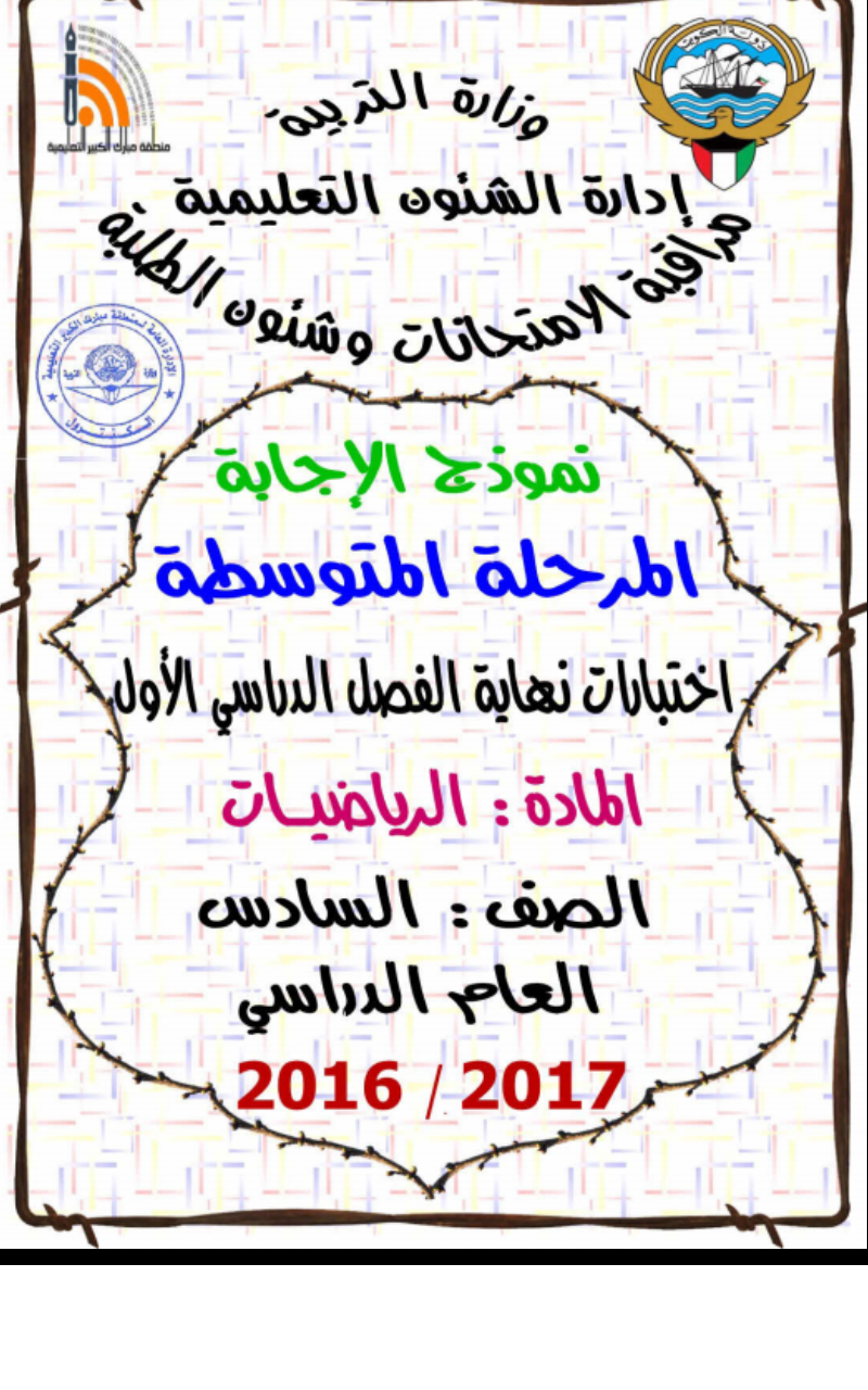 | نموذج اجابة اختبار لمنطقة مبارك الكبير عام 2016في مادة الرياضيات | ||