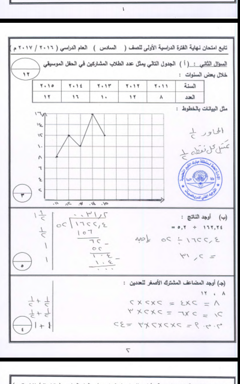 تم إيجاد الملف: نموذج اجابة اختبار لمنطقة مبارك الكبير عام 2016في مادة الرياضيات