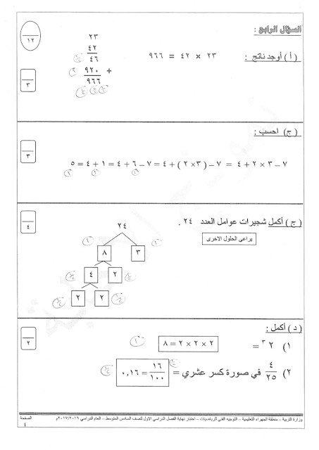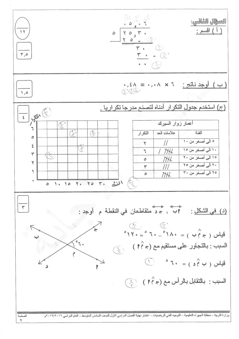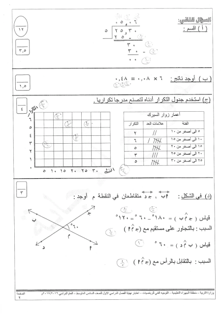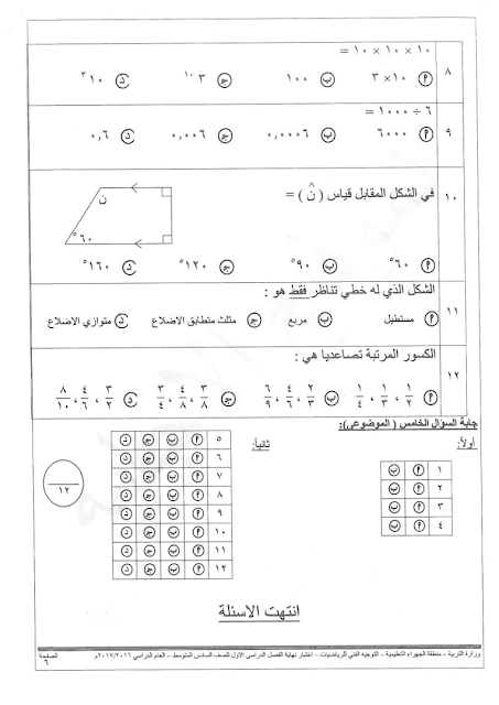 معلومات الملف: 7اوراق في مادة الرياضيات للصف السادس للكورس الاول تتضمن نموذج اجابة اختبار تابع للادارة العامة لمنطقة الجهراء التعليمية | ||