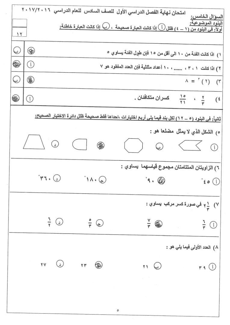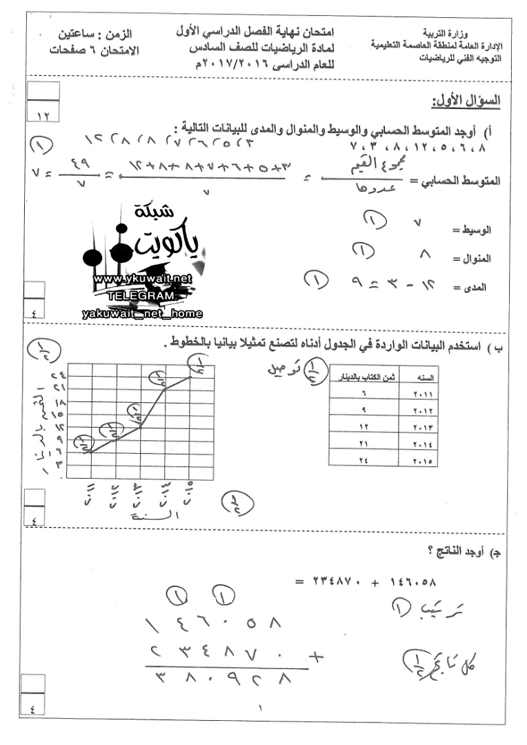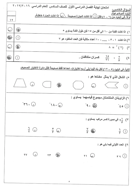 معلومات الملف: 7اوراق في مادة الرياضيات للصف السادس للكورس الاول تتضمن نموذج اجابة اختبار تابع للادارة العامة لمنطقة العاصمة التعليمية | ||
