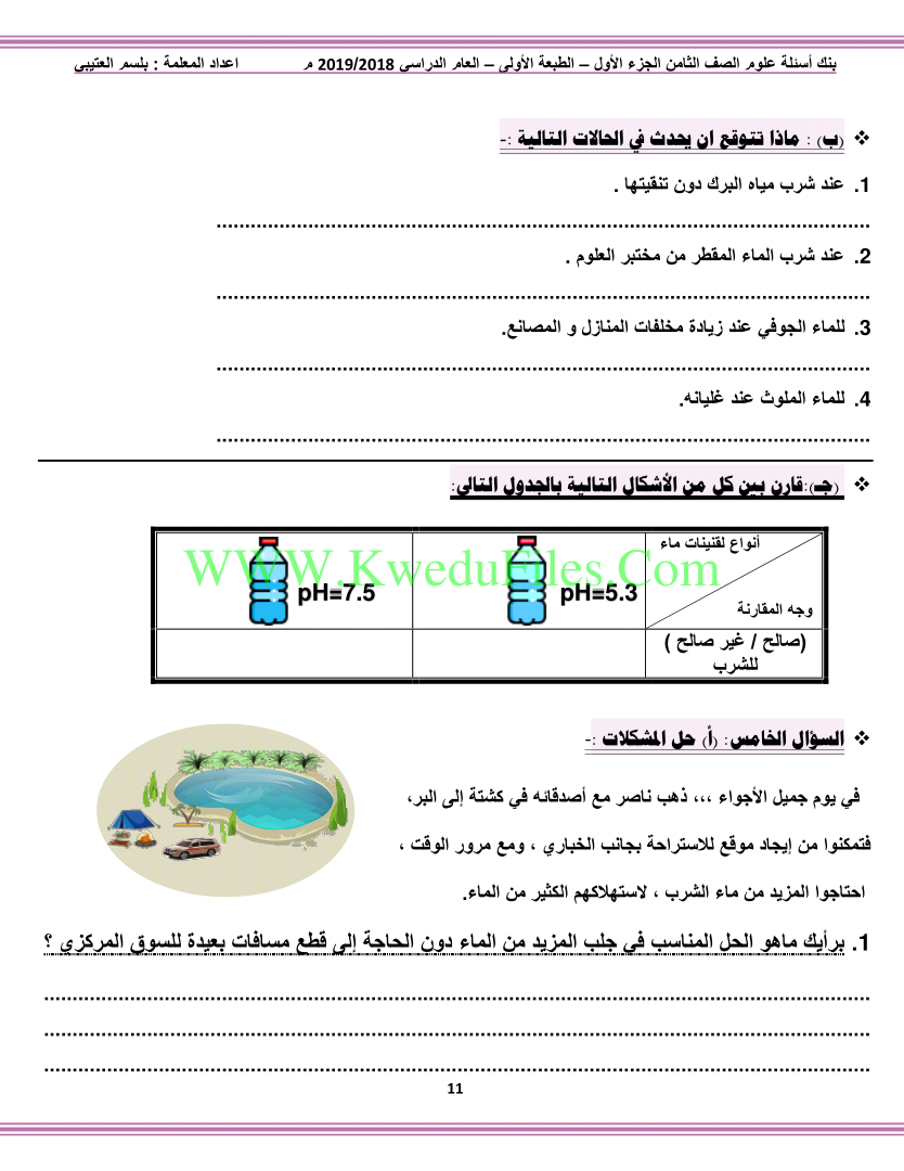 تم إيجاد الملف: بنك أسئلة الوحدة الاولى في مادة العلوم