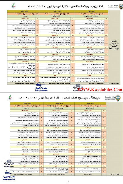 معلومات الملف: ورقة واحدة في مادة اللغة العربية للصف الخامس تتضمن خطة توزيع المنهج لعام 2019للكورس الاول | ||