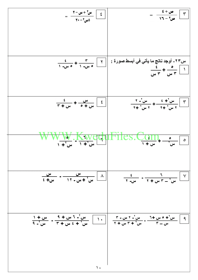 مذكرة كورس اول في مادة الرياضيات | ||