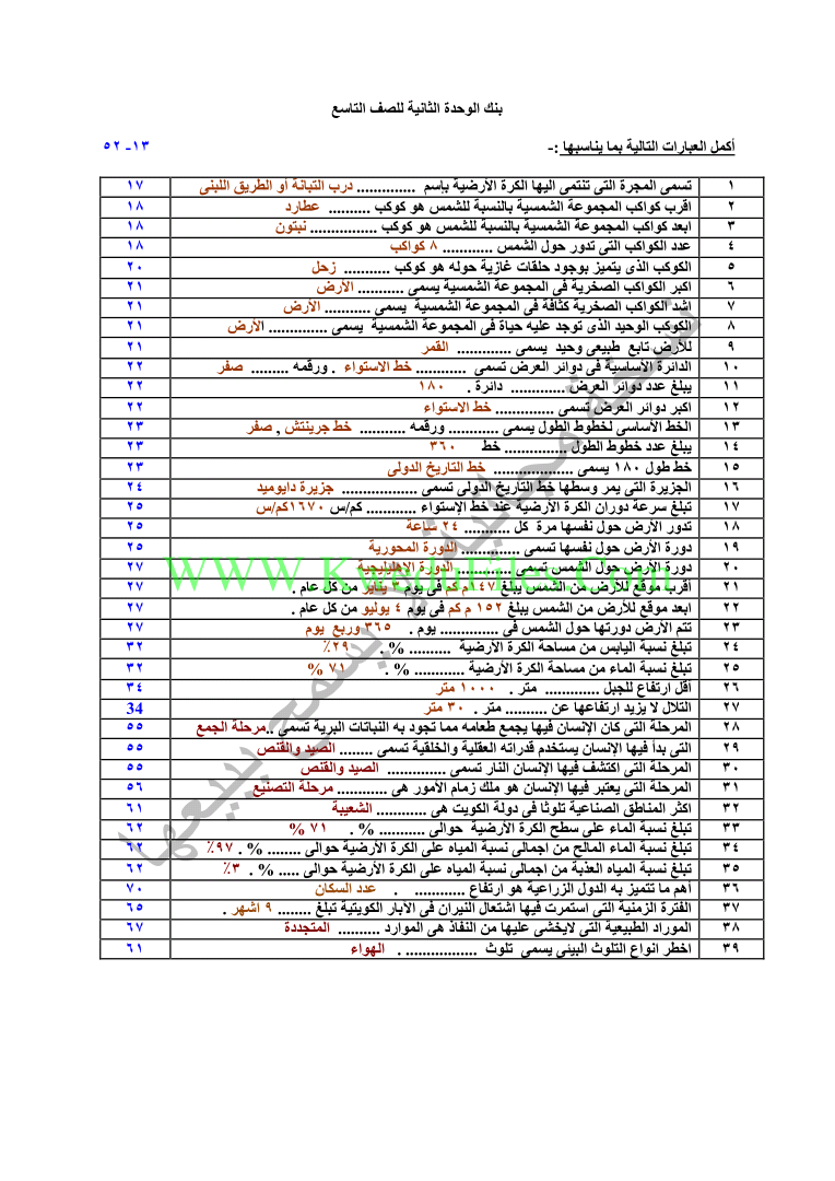 بنك اسئلة الوحدة الثانية في مادة العلوم