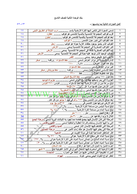 أكثر خمس كلمات زيارة اليوم بحسب: علوم - الصف التاسع - الفصل الأول