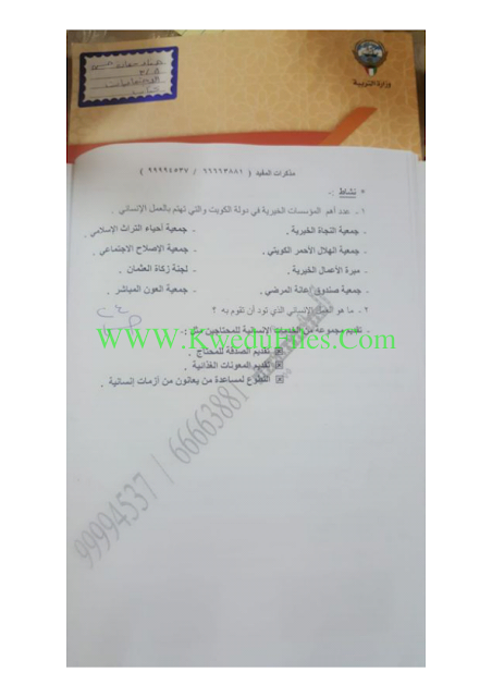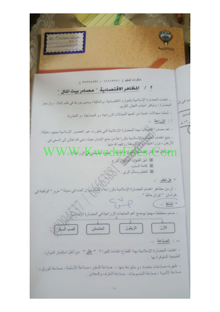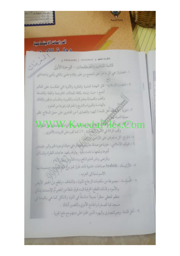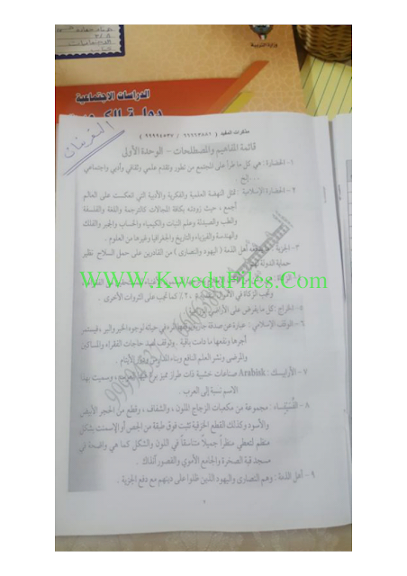 15. بنك أسئلة لمقرر الدراسات الاجتماعيات - الكويت والوطن العربي