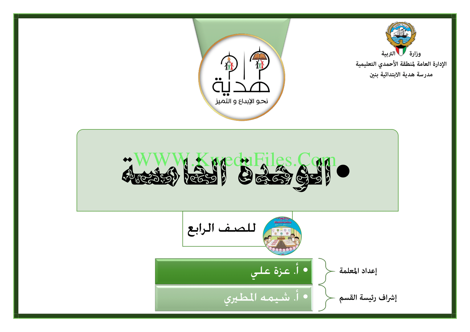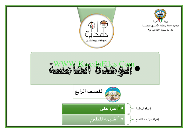 الوحدة الخامسة في مادة الرياضيات للصف الرابع للكورس الاول عدد اوراق هذا الملف 38ورقة مع العلم ان صور الملف ادناه لاتحتوي