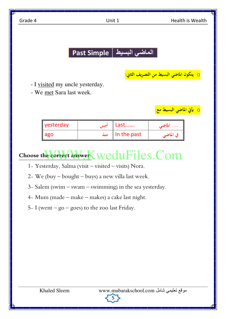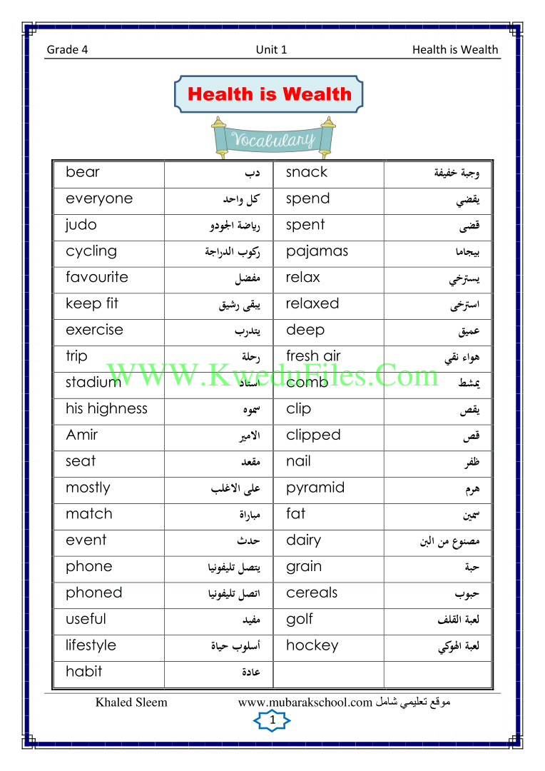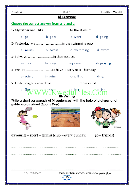 معلومات الملف: 10اوراق في مادة اللغة الانكليزية للصف الرابع للكورس الاول تتضمن تدريبات على الوحدة الاولى منهج جديد | ||