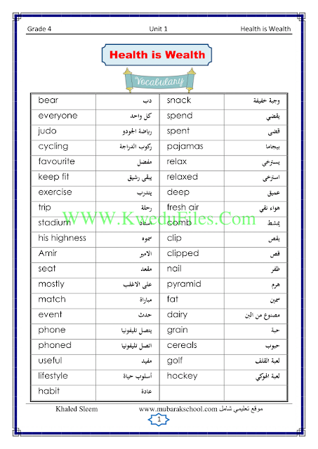 تدريبات على الوحدة الاولى في مادة اللغة الانكليزية منهج جديد - إعداد: مستر خالد السالمان | ||