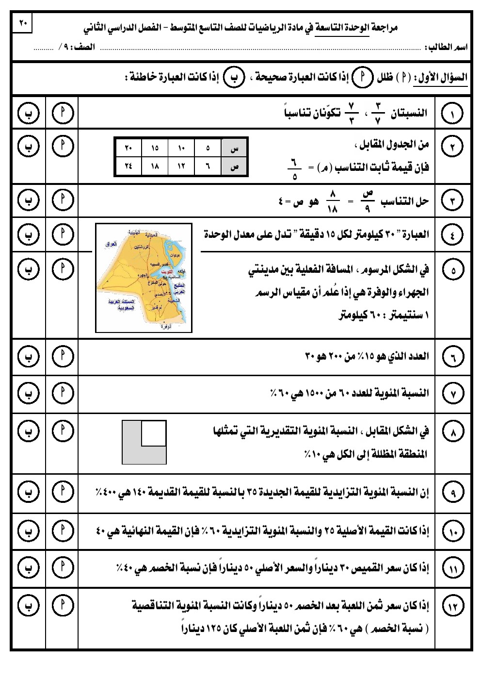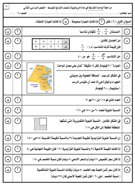 أحدث ملفات الصف التاسع, رياضيات, الفصل الثاني