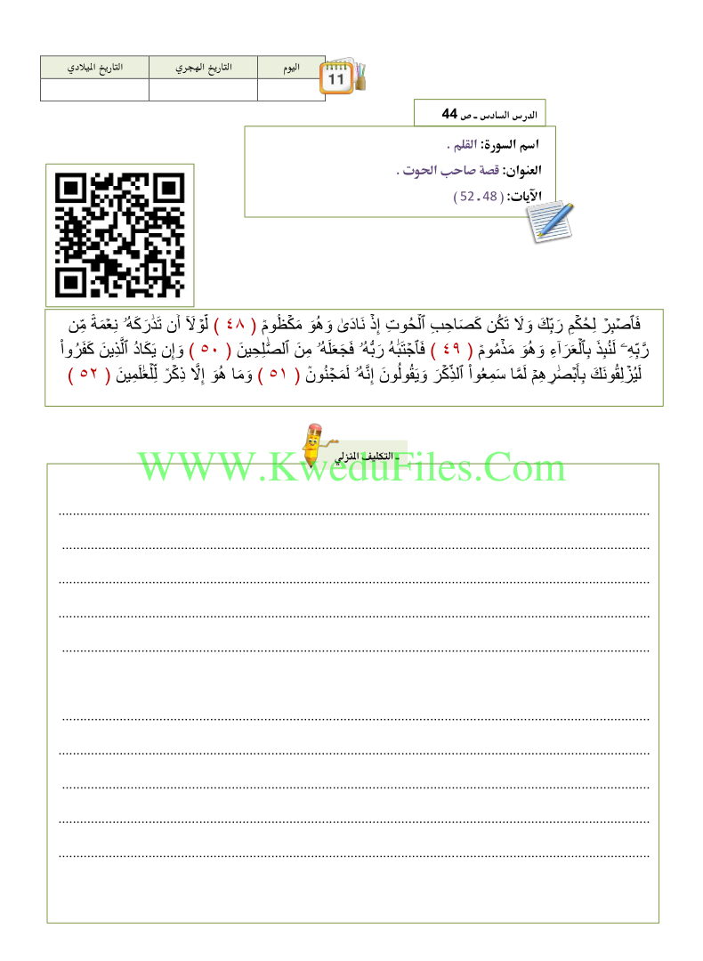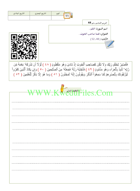 كراسة الصف الثامن للدراسات القرآنية للكورس الاول عدد اوراق هذا الملف 15ورقة مع العلم ان صور الملف ادناه لاتحتوي الا على جزء من محتوى الملف الذي ستجده كاملا"عند تحميله