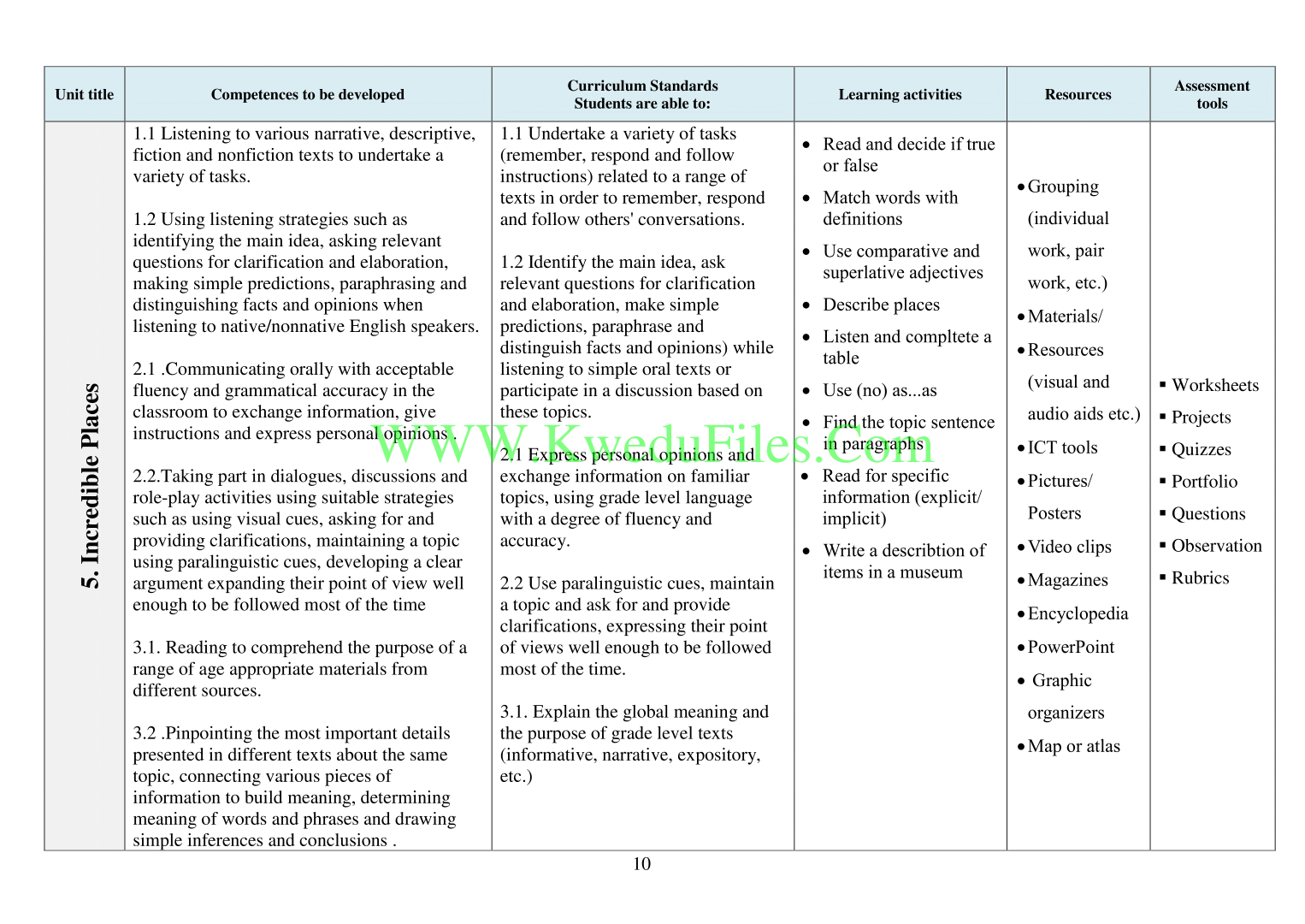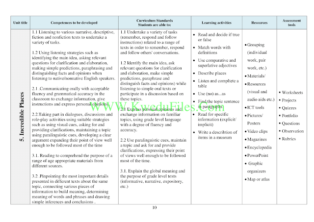مذكرة الوحدة Unit Plan في مادة اللغة الانكليزية