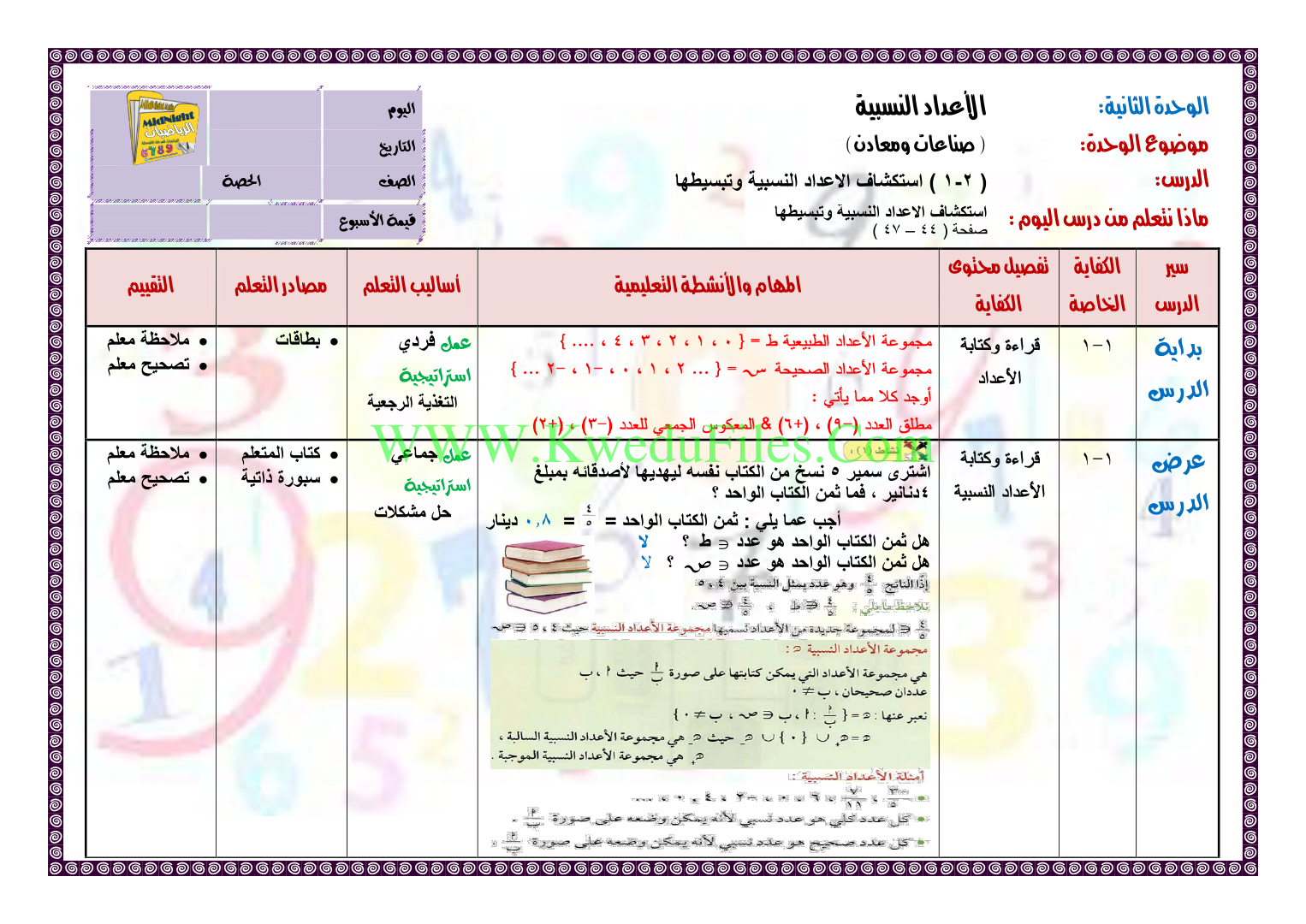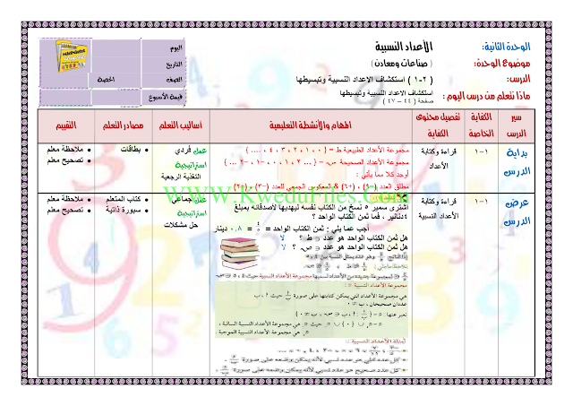 تم إيجاد الملف: استكشاف الاعداد النسبية وتبسيطها في مادة الرياضيات
