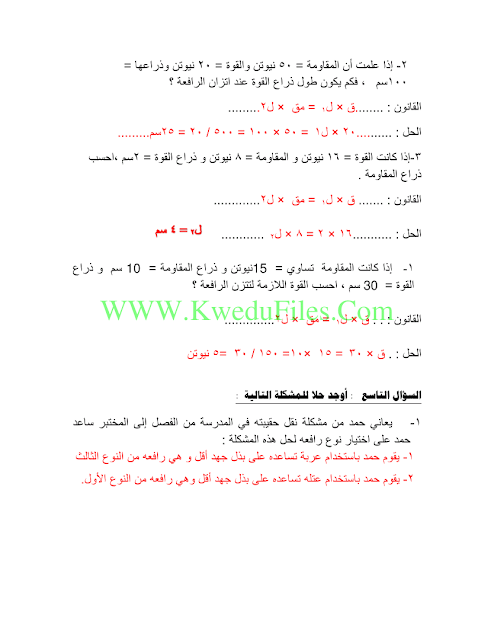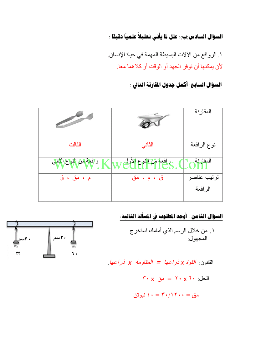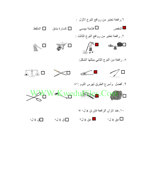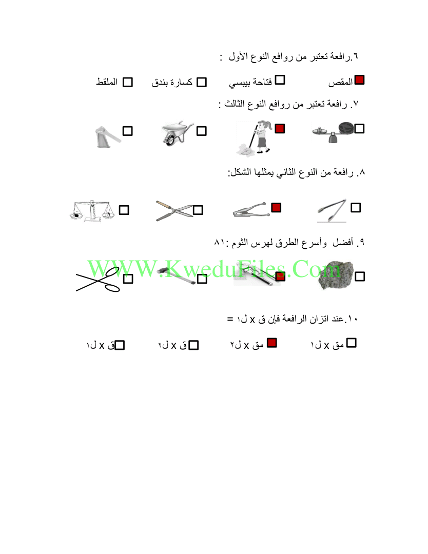 معلومات الملف: 9اوراق في مادة العلوم للصف السادس للكورس الاول تتضمن اجابة بنك اسئلة الروافع | ||