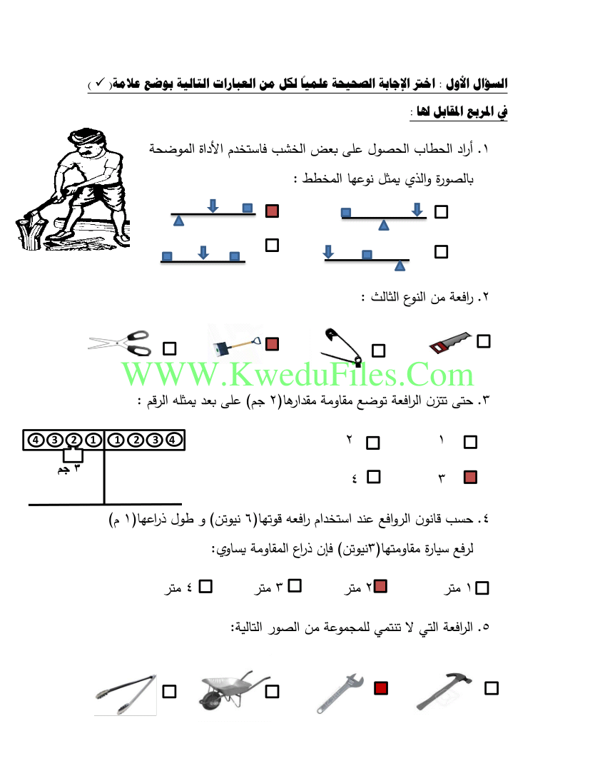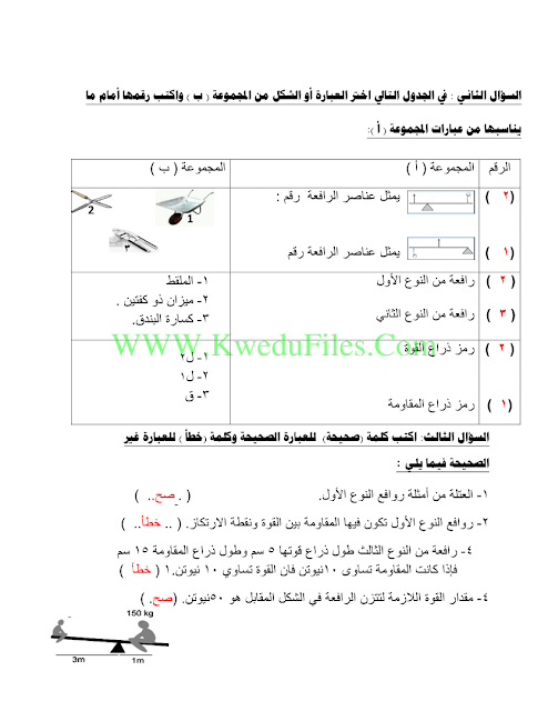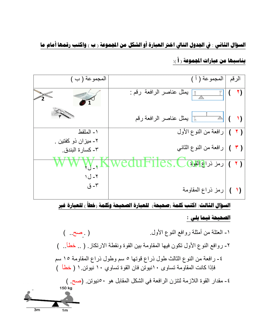 تم إيجاد الملف: اجابة بنك اسئلة الروافع في مادة العلوم