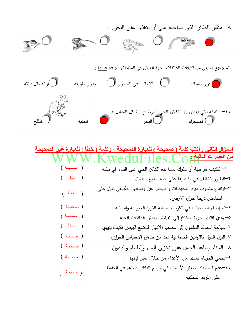 تم إيجاد الملف: اجابة بنك اسئلة وحدة التكيف مع الكائنات الحية
