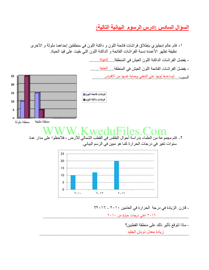 8اوراق في مادة العلوم للصف السادس للكورس الاول تتضمن اجابة بنك اسئلة وحدة التكيف مع الكائنات الحية