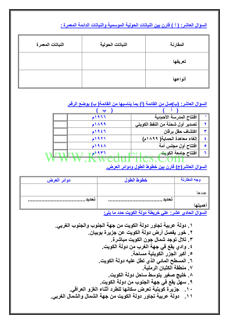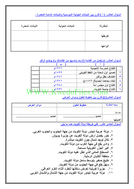 4. بنك أسئلة كتاب بلادي الكويت