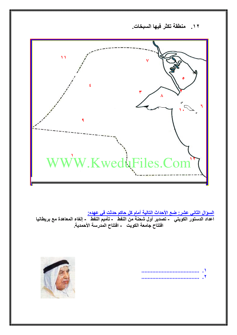 15. نموذج الإجابة في منطقة حولي للعام الدراسي