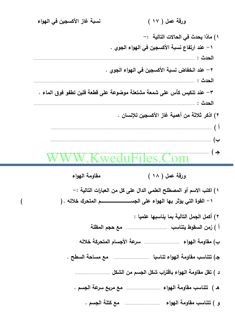 اوراق عمل مهمة في مادة العلوم - إعداد: ابراهيم علي