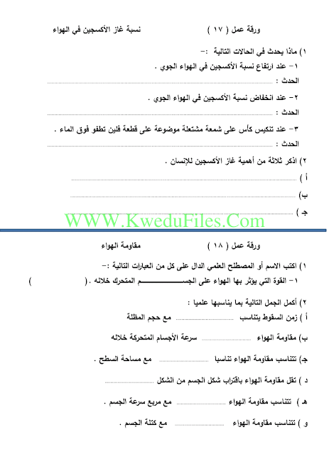 تم إيجاد الملف: اوراق عمل مهمة في مادة العلوم