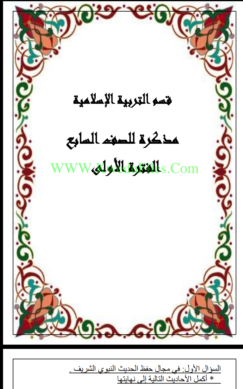 أحدث ملفات الصف السابع, تربية اسلامية, الفصل الأول