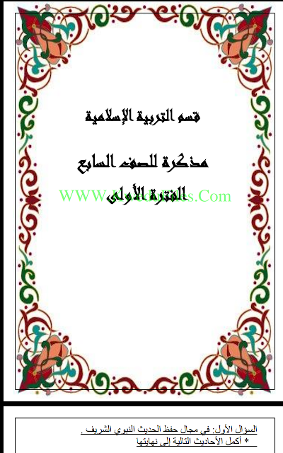بنك اسئلة في مادة التربية الاسلامية للصف السابع للكورس الاول عدد اوراق هذا الملف 9اوراق معرالعلم ان صور الملف ادناه لاتحتوي الا جزء من محتوى الملف الذي ستجده كاملا" عند تحميله