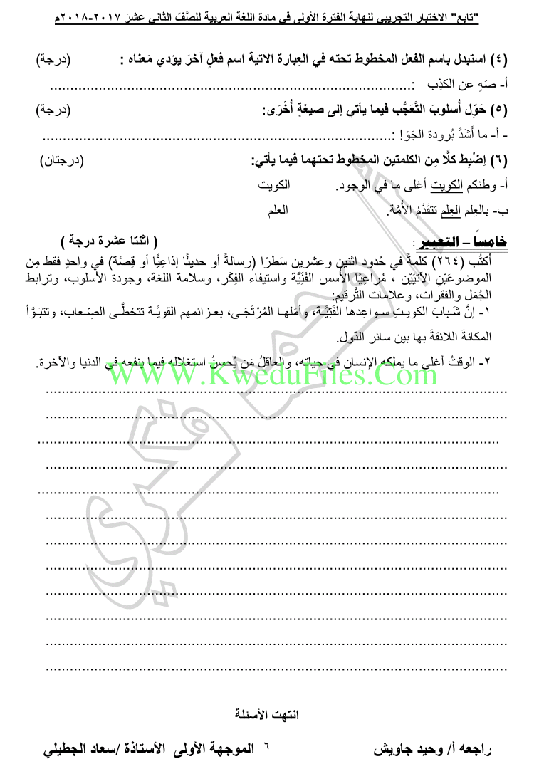 معلومات الملف: 6اوراق في مادة اللغة العربية تتضمنمذكرةشرح وتحليل موضوعات للصف الثاني عشر للكورس الاول | ||