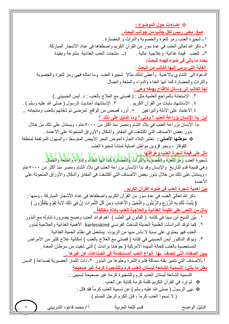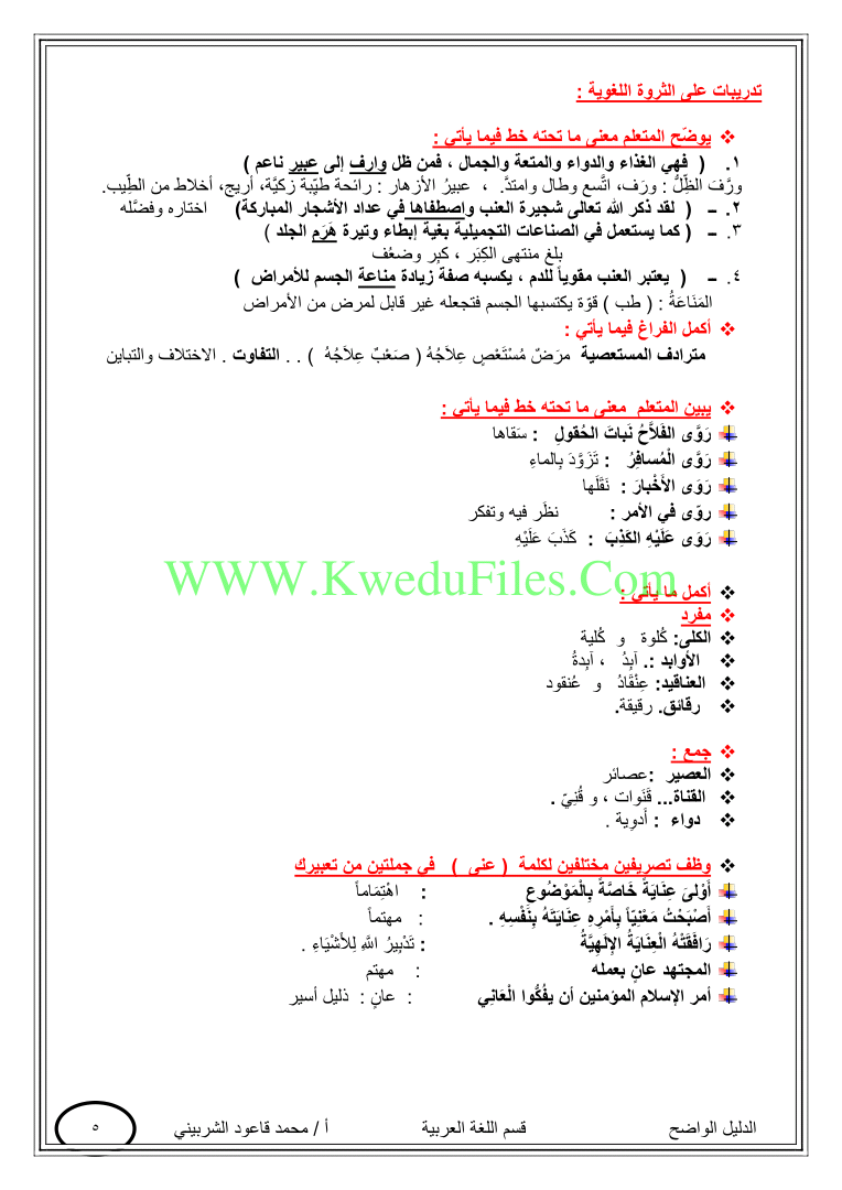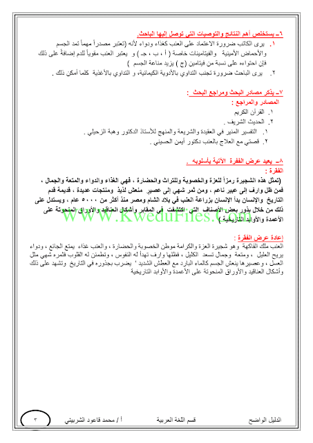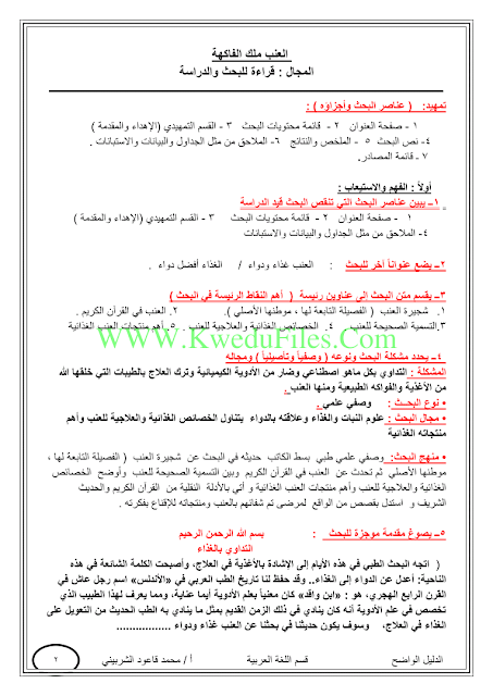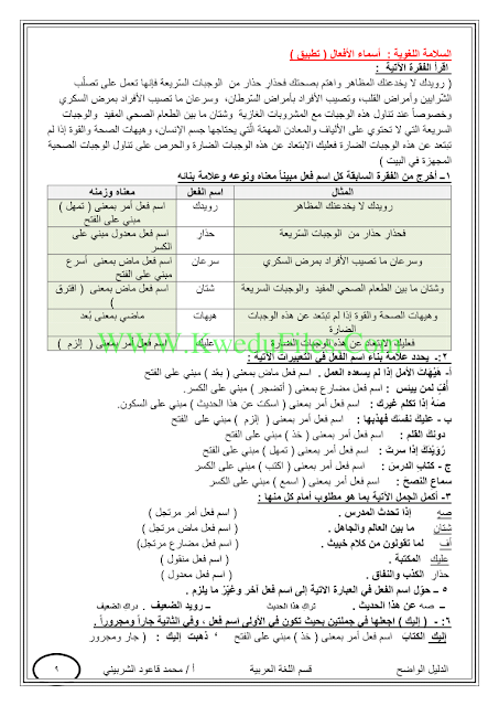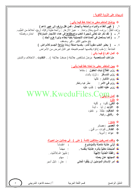 5. الصف السادس, لغة عربية, نموذج اختبار قصير