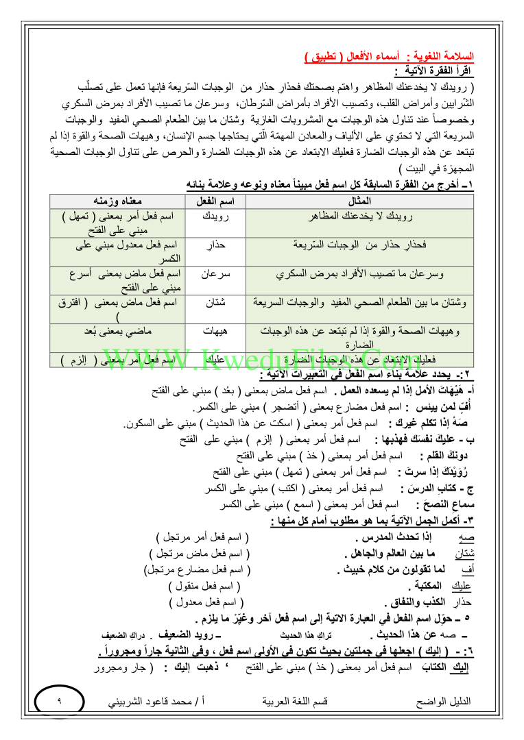 1. الصف السادس, لغة عربية, علامات الإعراب الفرعية