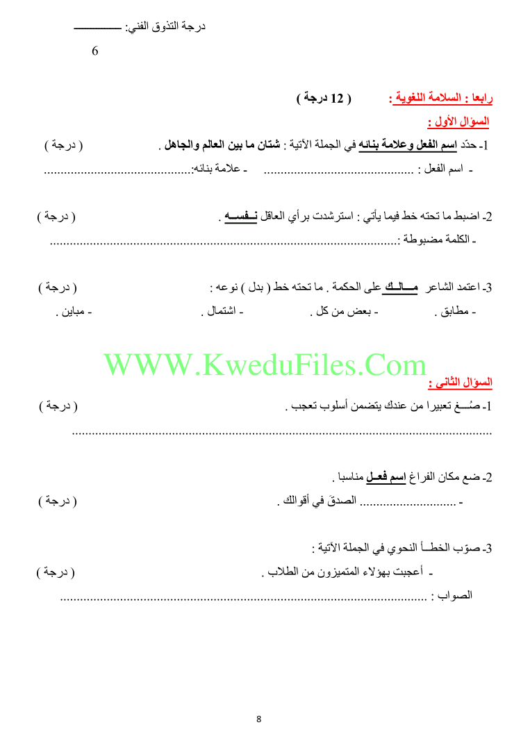 تم إيجاد الملف: نموذج اجابة اختبار تجريبي في مادة اللغة العربية