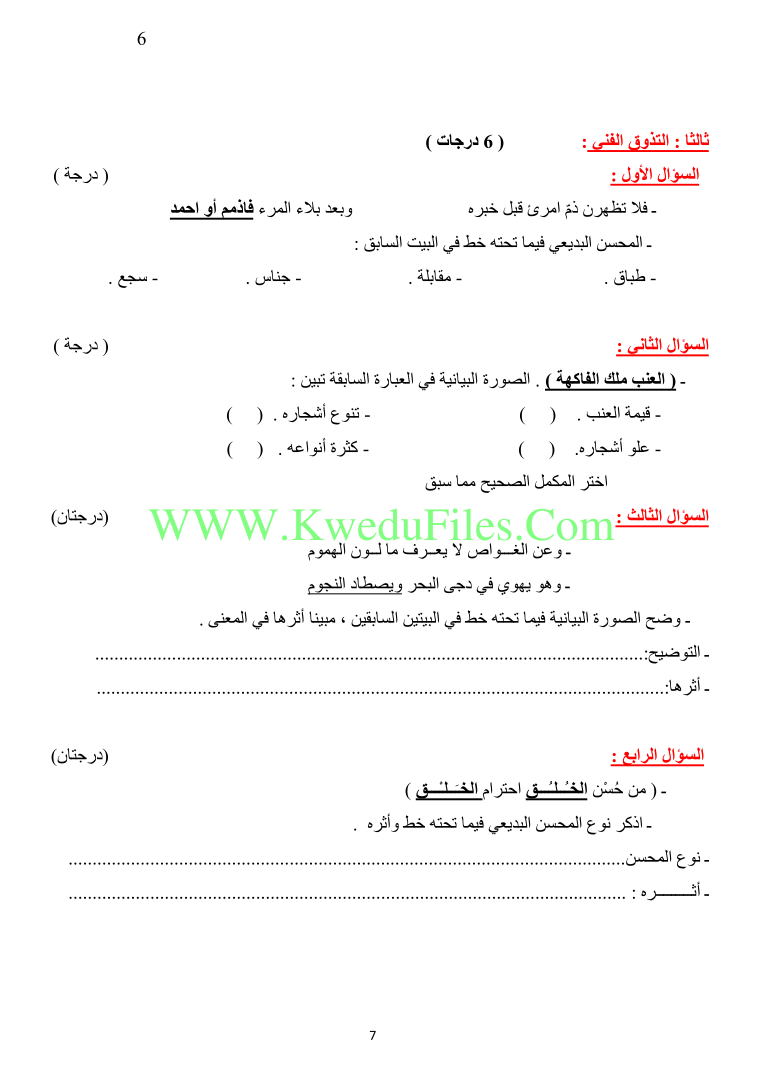 | السابق: نموذج اجابة اختبار العاصمة في مادة اللغة العربية | الملف الحالي: 1863 | التالي: إجابة اختبار قصير ثاني مع تقييم الفهم اللغوي والبلاغي والنحوي في نصوص (مفتاح شخصية عمر) و (من يعدل الأذناب بالذرّا) |