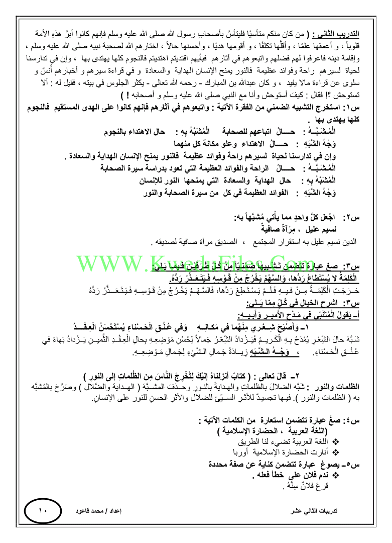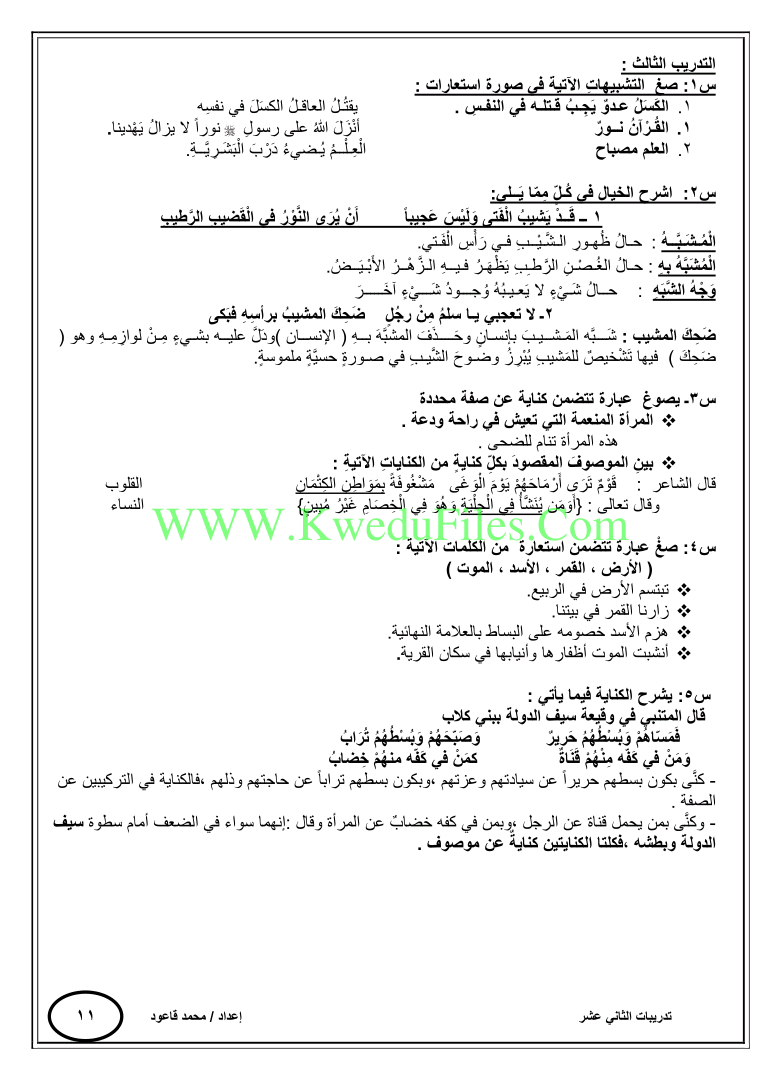 تدريبات التذوق الفني في مادة اللغة العربية - إعداد: محمد قاعود