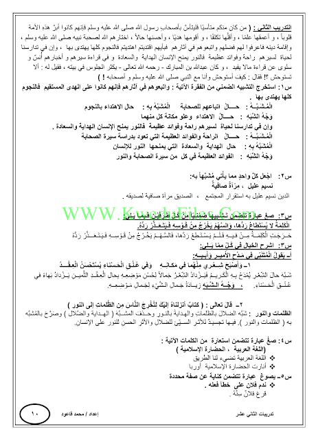 12. نماذج للاختبار القصير الثاني مرفق بالإجابة
