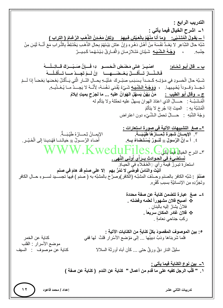 تدريبات التذوق الفني في مادة اللغة العربية للصف الثاني عشر للكورس الاول عدد اوراق هذا الملف 5صفحات، مع تمنياتنا لكم بالنجاح والتفوق الدائم