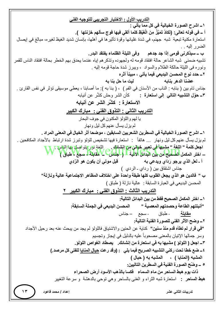 3. الصف التاسع, علوم, مراجعة شاملة في الورقة التقويمية للبصريات