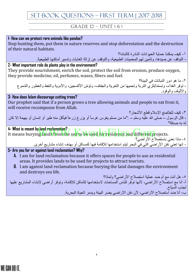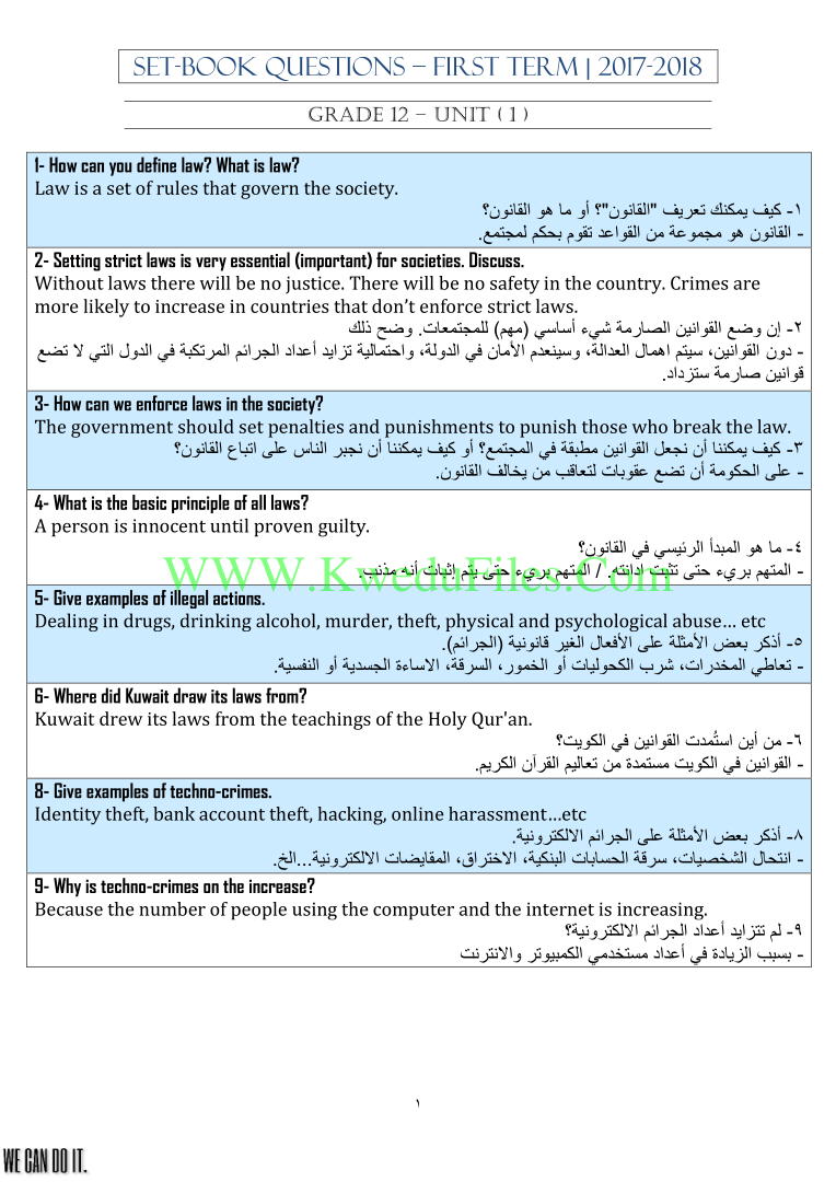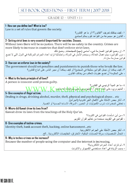 معلومات الملف: 10اوراق في مادة اللغة الانكليزية للصف الثاني عشر للكورس الاول تتضمن كتاب السيت بوك مترجم | ||