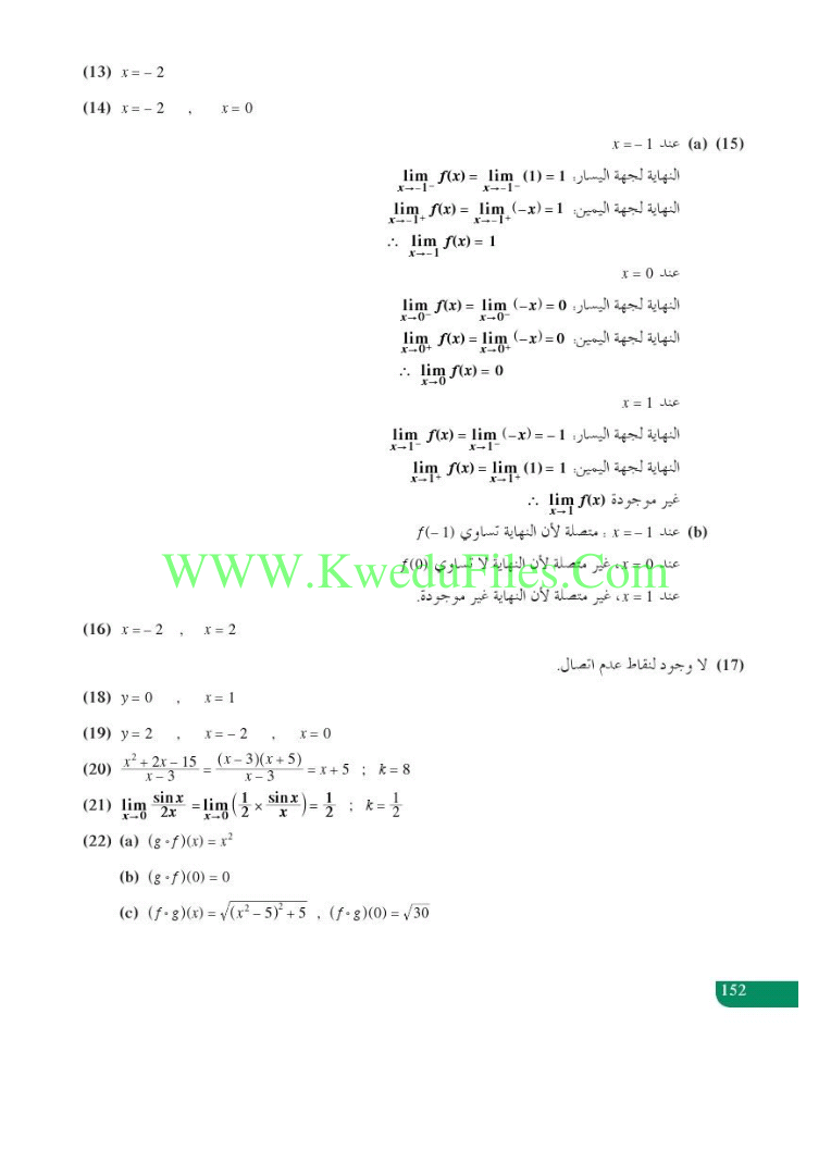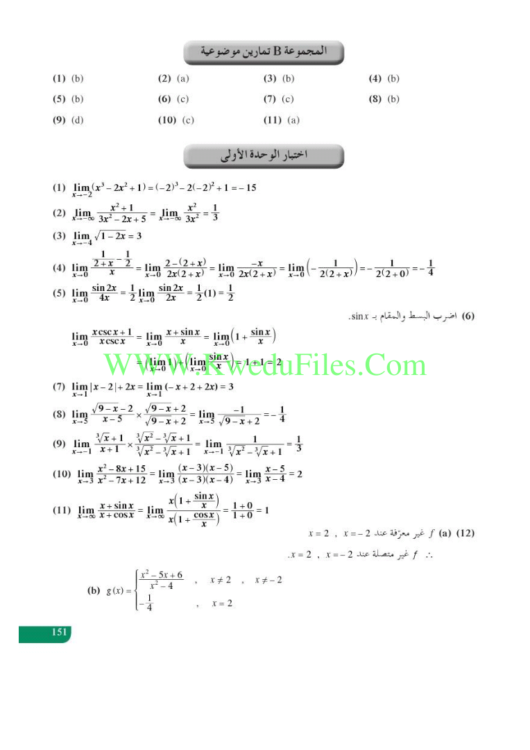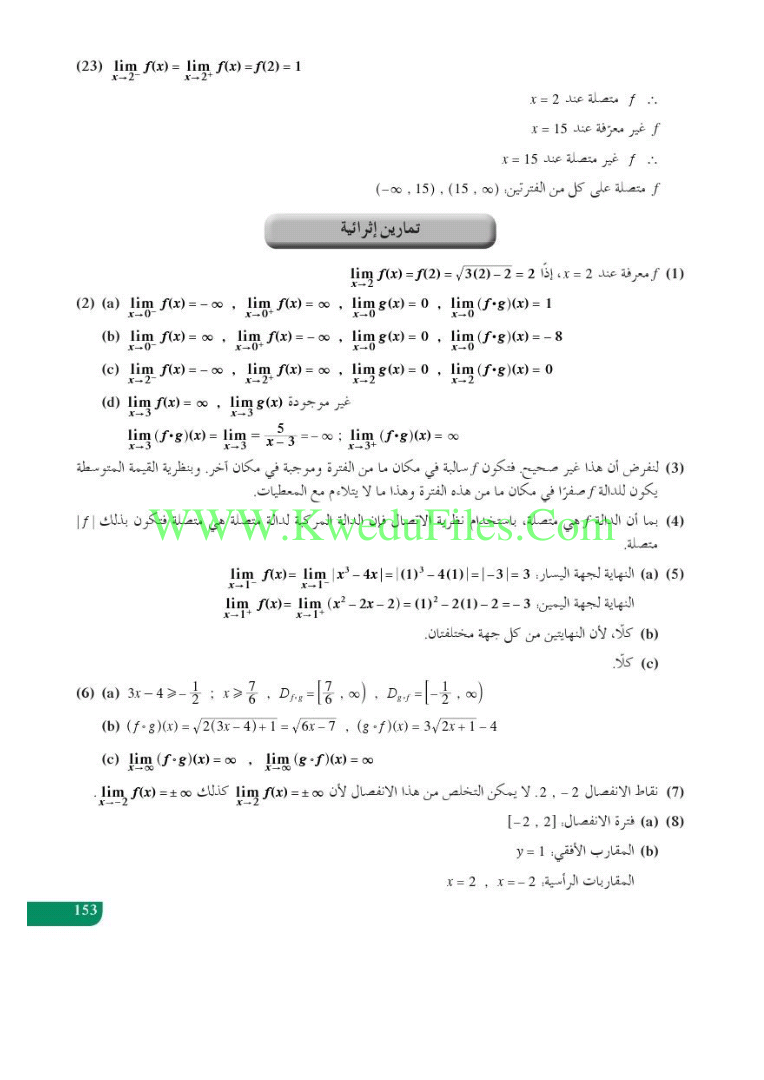 أنت هنا: موقع المناهجالمناهج الكويتية الصف الثاني عشر العلمي رياضيات الفصل الأول حلول