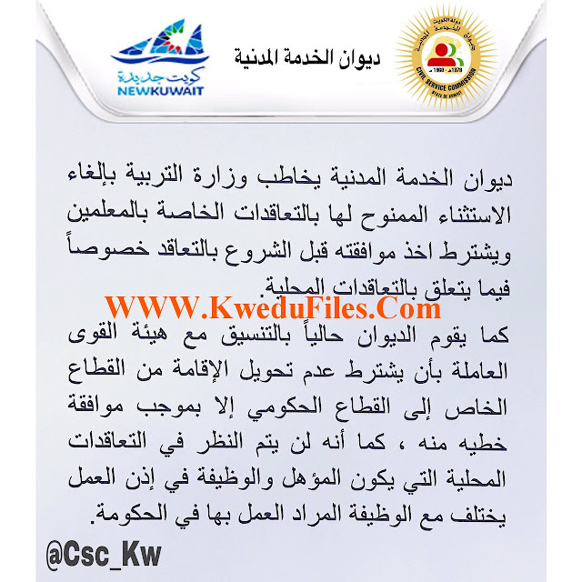 تم إيجاد الملف: تصريح ديوان الخدمة المدنية بخصوص التعاقدات الخاصة بالمعلمين في وزارة التربية