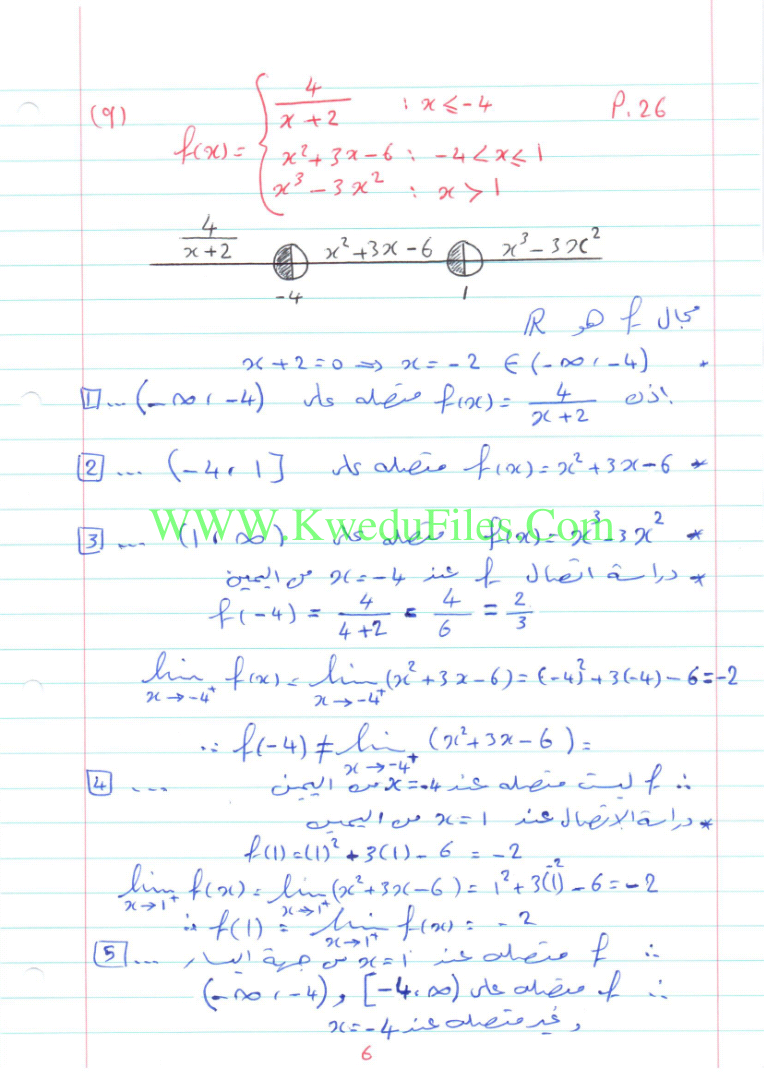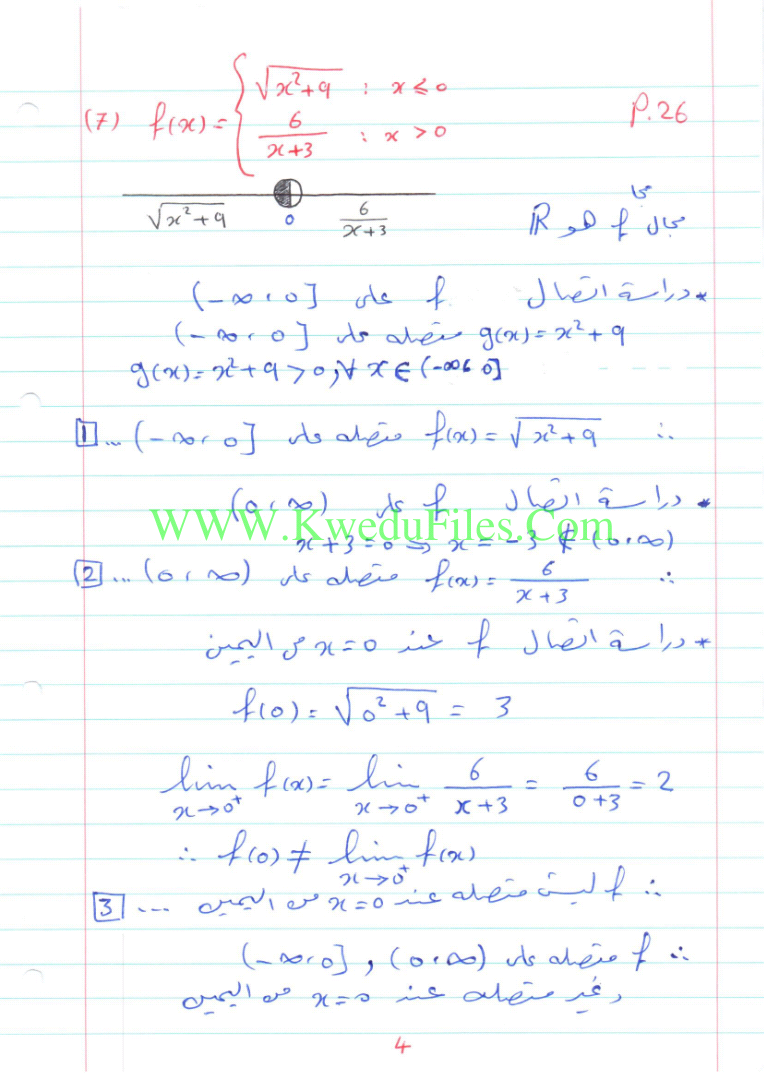9اوراق في مادة الرياضيات للصف الثاني عشر للكورس الاول تتضمن درس الاتصال على فترة