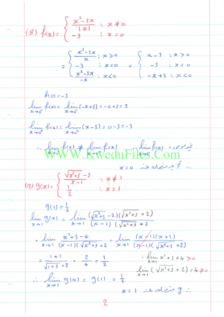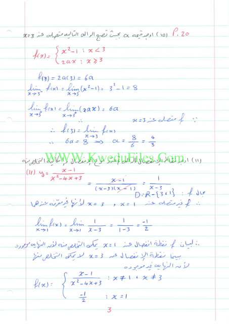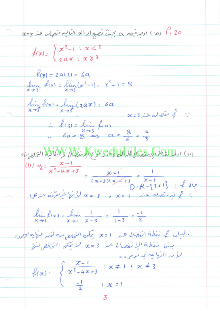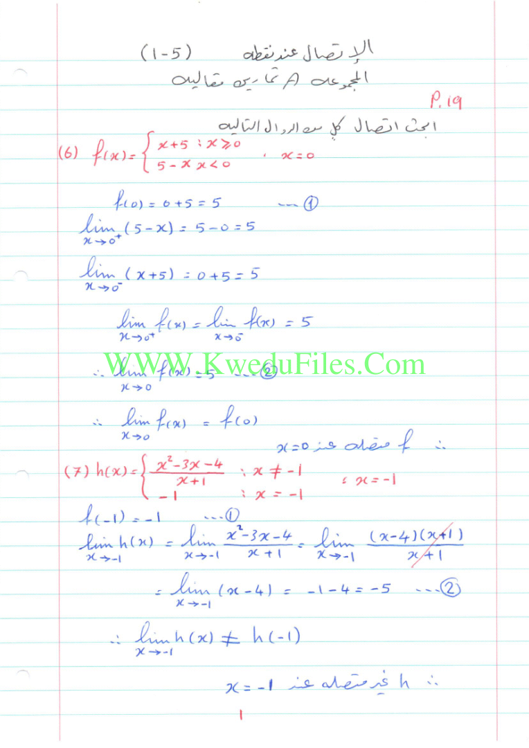معلومات الملف: 5اوراق في مادة الرياضيات للصف الثاني عشر العلمي للكورس الاول تتضمن درس الاتصال عند نقطة | ||