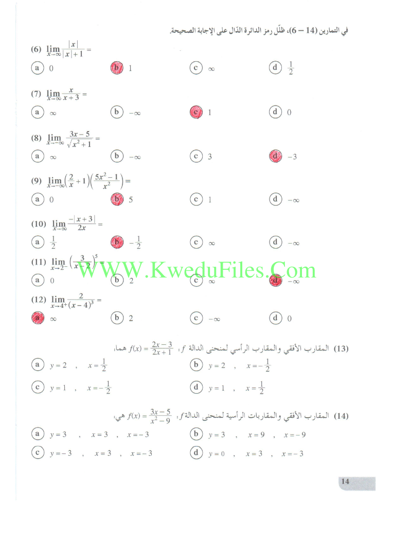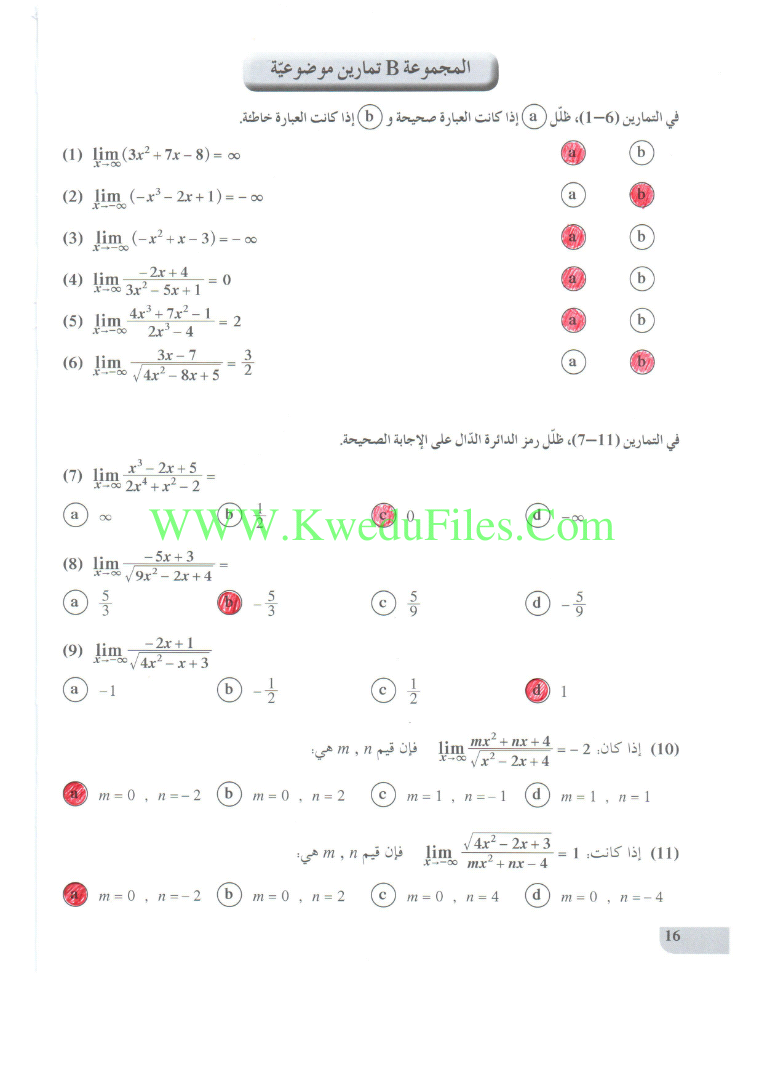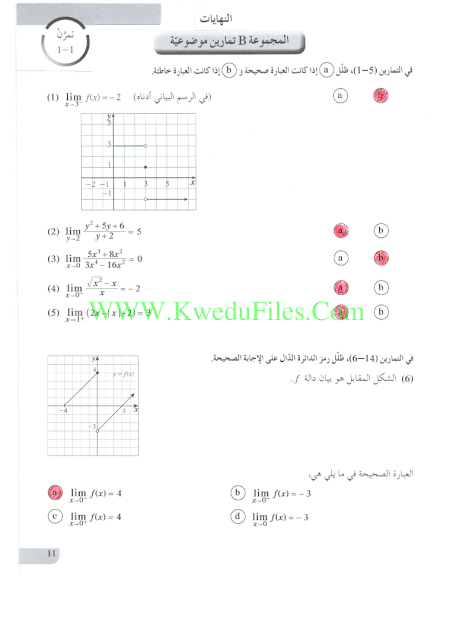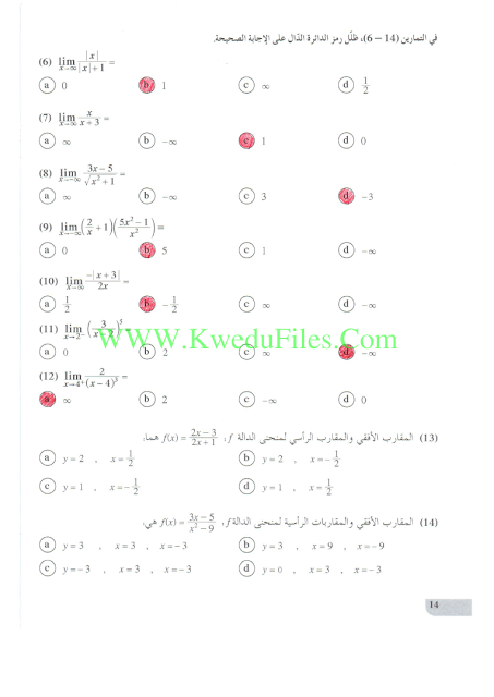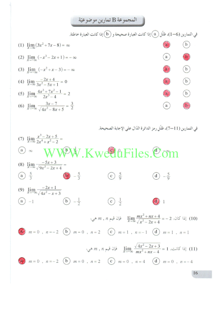 حل الموضوعي لوحدة النهايات في مادة الرياضيات | ||