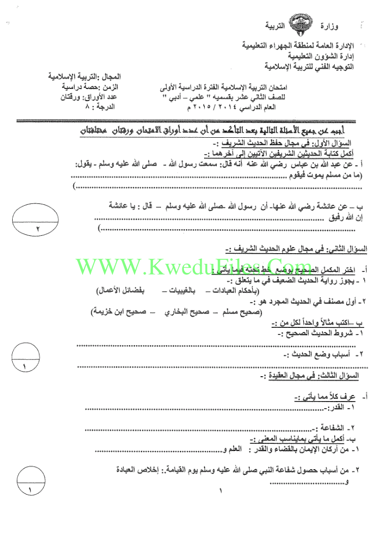 أنت هنا: موقع المناهجالمناهج الكويتية الصف الثاني عشر تربية اسلامية الفصل الأول مذكرات وبنوك