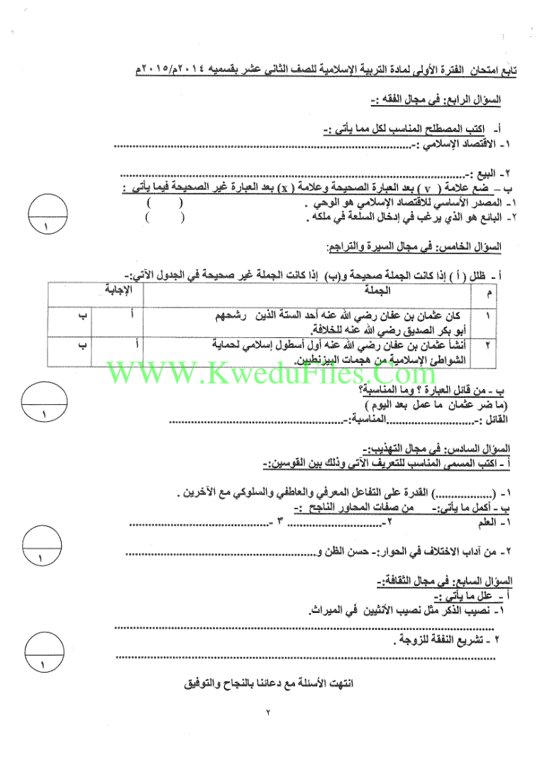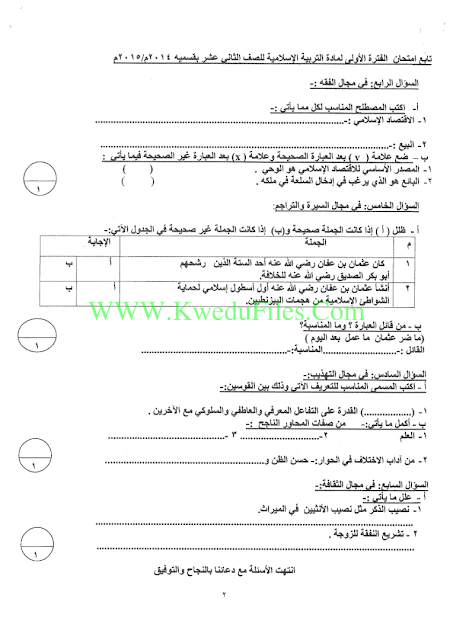أحدث ملفات الصف الثاني عشر, تربية اسلامية, الفصل الأول