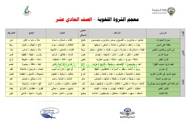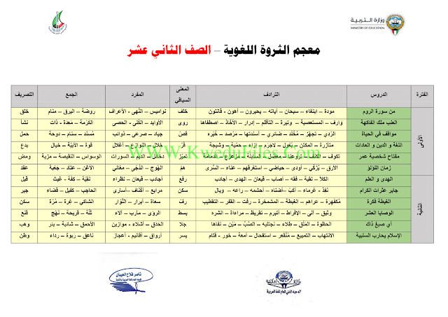 7. لغة عربية, الفصل الأول, 2018-2019, الثروة اللغوية للمرحلة الثانوية مع التعديلات في مادة اللغة العربية