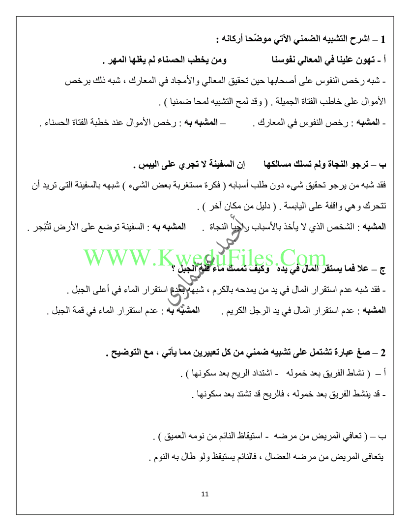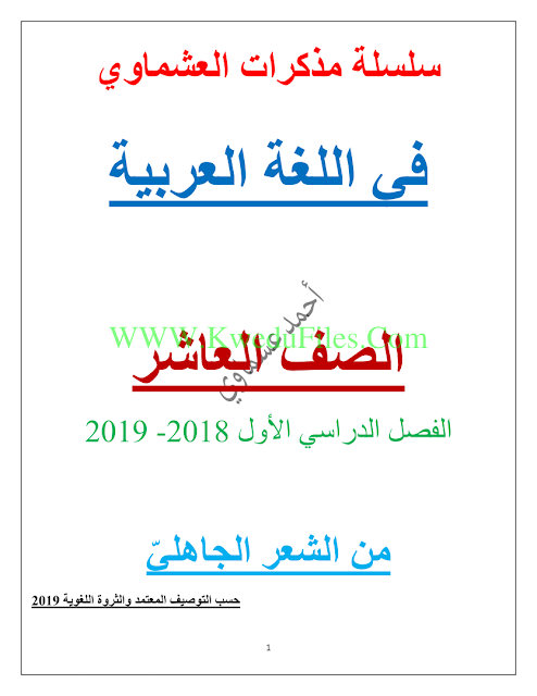 مذكرة الدرس الثاني (من الشعر الجاهلي)في مادة اللغة العربية - إعداد: العشماوي | ||